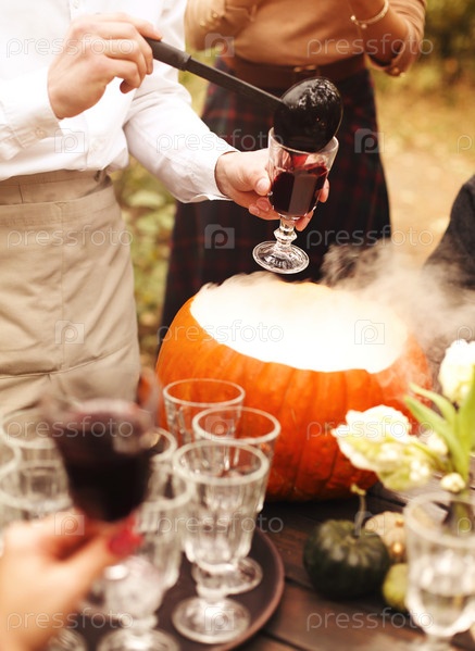 люди наливают хэллоуинский пунш