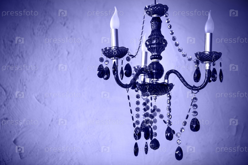 Хрустальная люстра крупным планом. Гламурный черно-белый, сиреневый фон