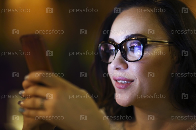 Женщина с помощью смартфона в ресторане