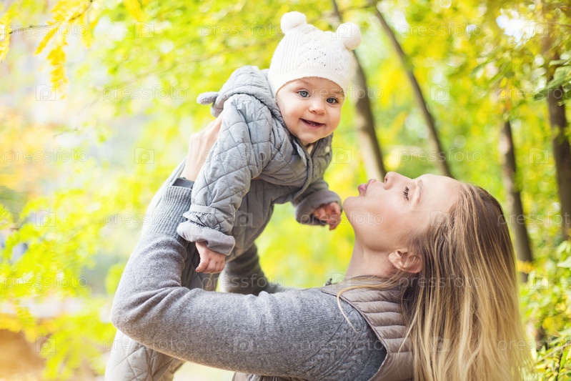 Мать и ее маленькая дочь играют в объятия на осенней прогулке на природе на свежем воздухе