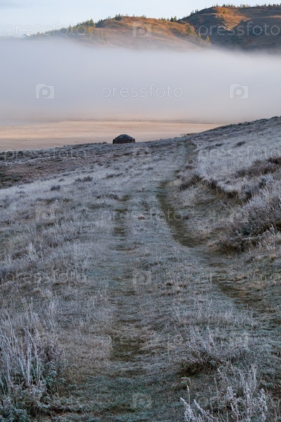 Дом алтайского чабана аил и озеро Джангыскол на горном плато Эштыкель. Алтай, Россия
