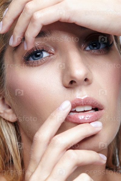 Снимок крупным планом женского лица и макияжа глаз