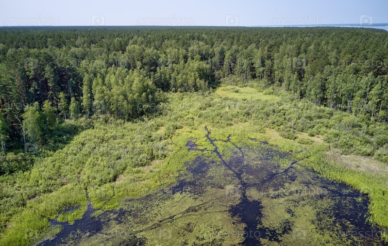 Аэрофотоснимок лесного болота в Караканском бору у берега Обского водохранилища