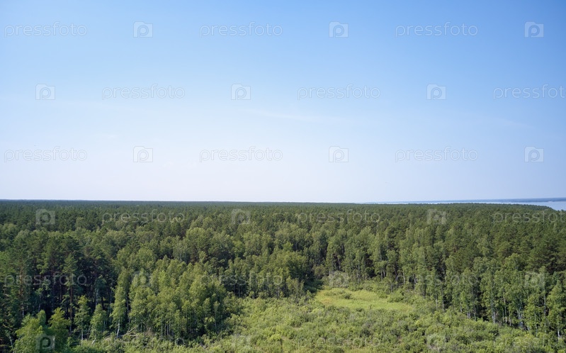 Аэрофотоснимок лесного болота в Караканском бору у берега Обского водохранилища