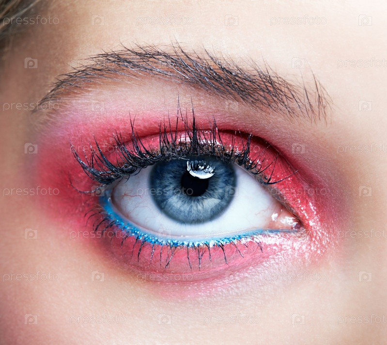 Макрофотография крупным планом закрытого человеческого женского глаза с розовыми дымчатыми тенями