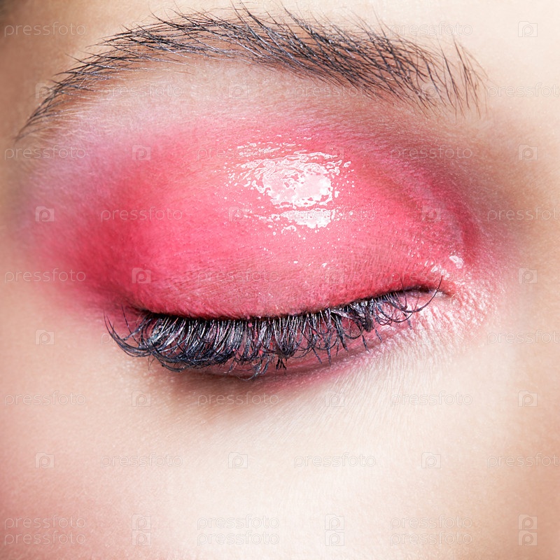 Девушка с идеальной кожей и розовыми дымчатыми тенями для глаз