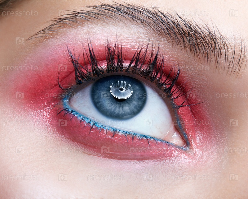 Макрофотография крупным планом закрытого человеческого женского глаза с розовыми дымчатыми тенями