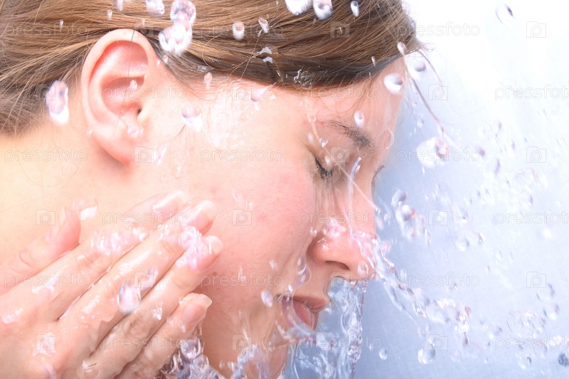 Девушка умывает лицо