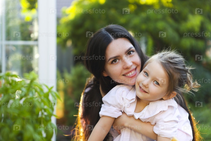 Молодая мать с маленькой дочерью в саду