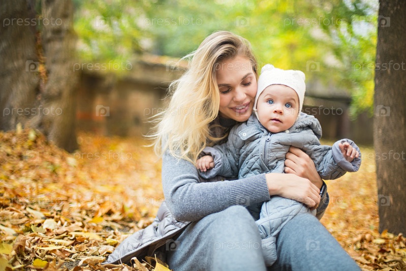 Мать и ее маленькая дочь играют на осенней прогулке на природе на свежем воздухе
