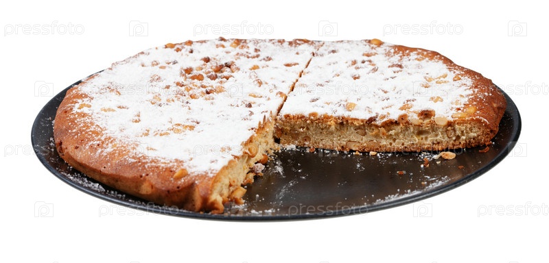 Нарезанный итальянский пирог с кедровыми орешками на изолированной тарелке