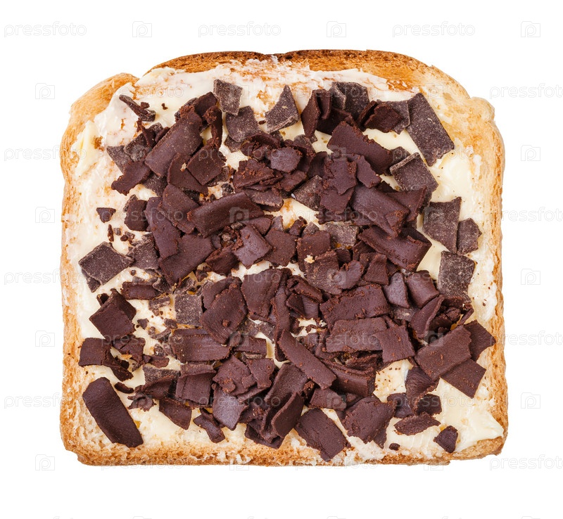 Вид сверху на тост с маслом и шоколадными хлопьями