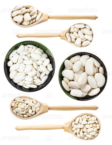 Набор различных белых бобов, изолированных на белом
