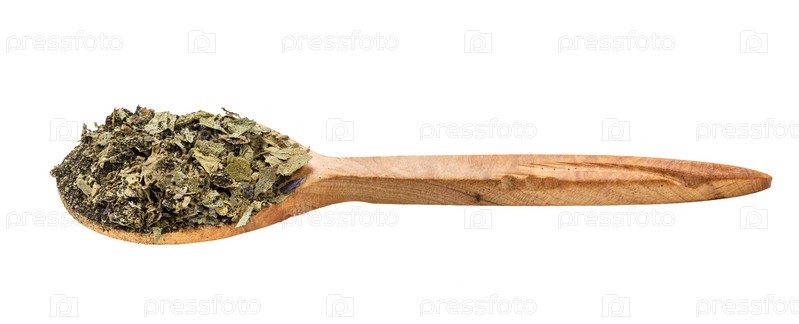 Ложка с молотыми листьями фиолетового и зеленого базилика
