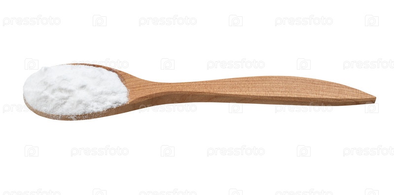 Бикарбонат натрия в деревянной ложке изолирован