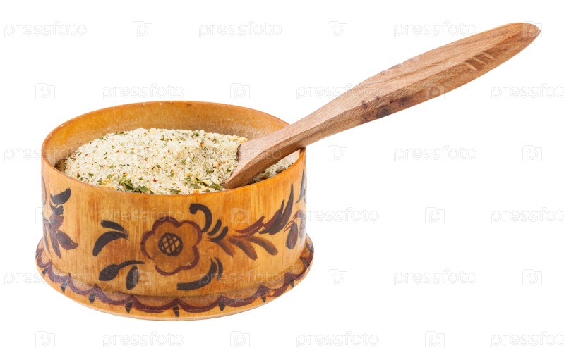Деревянная солонка с ложкой с ароматизированной солью