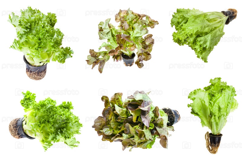 Различные салаты (листовой салат) в изолированных горшках