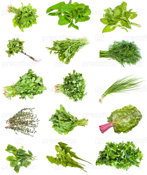 Различные пучки свежих съедобных трав изолированы