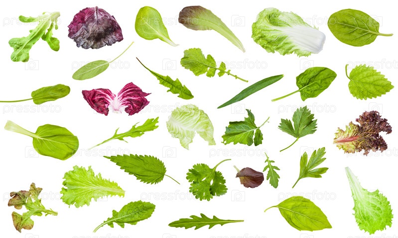Различные свежие листья съедобной зелени изолированы