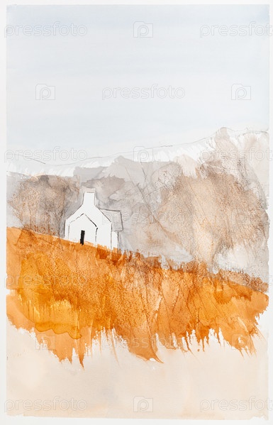 Одинокая часовня на склоне желтой горы осенью