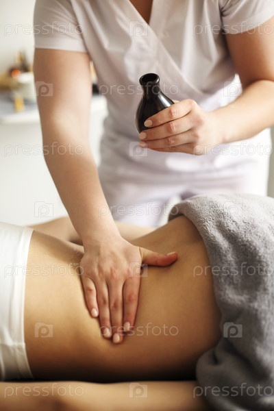 массаж с использованием массажного масла во время процедуры по уходу за кожей
