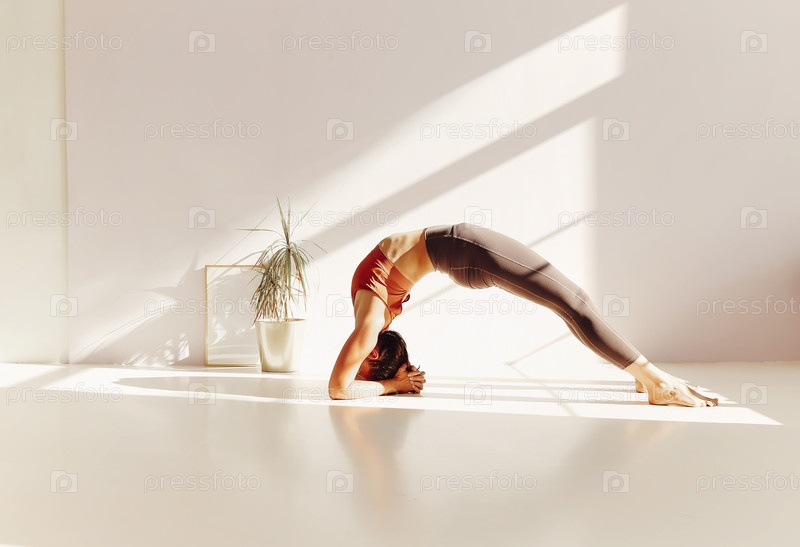 Гибкая женщина занимается йогой дома