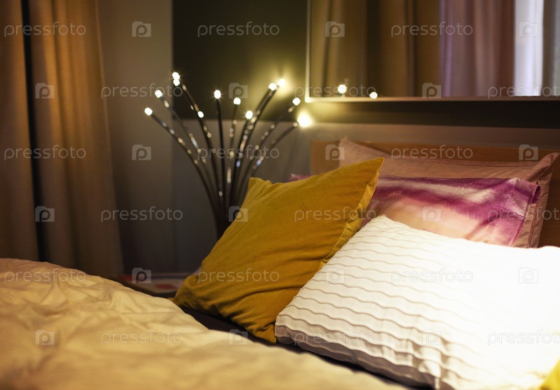 Уютная спальня с горящей лампой