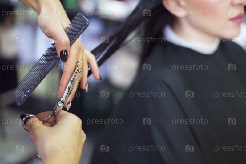 Парикмахер стрижет волосы клиента в салоне красоты. Концепция красоты