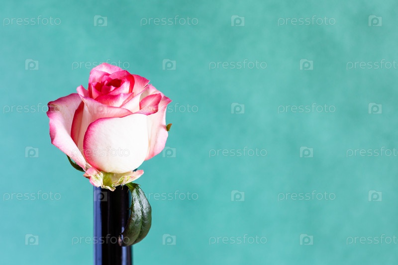 Белая и красная роза в бутылке на зеленом фоне