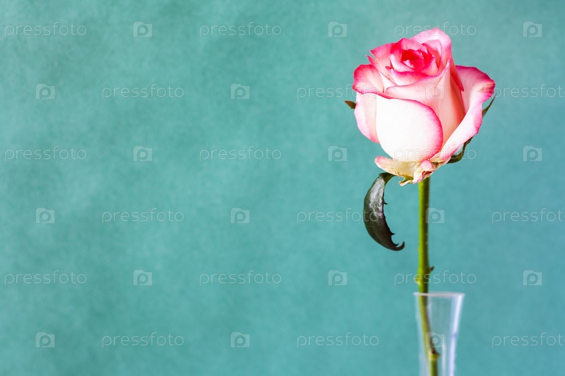 Свежая белая красная роза на фоне зеленой бумаги