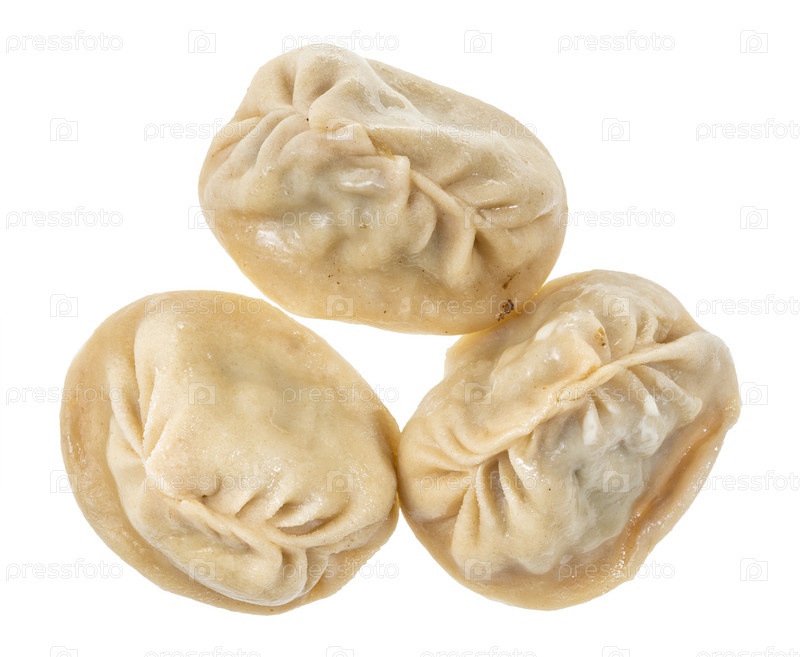 Вид сверху на несколько приготовленных мантов, изолированных на белом