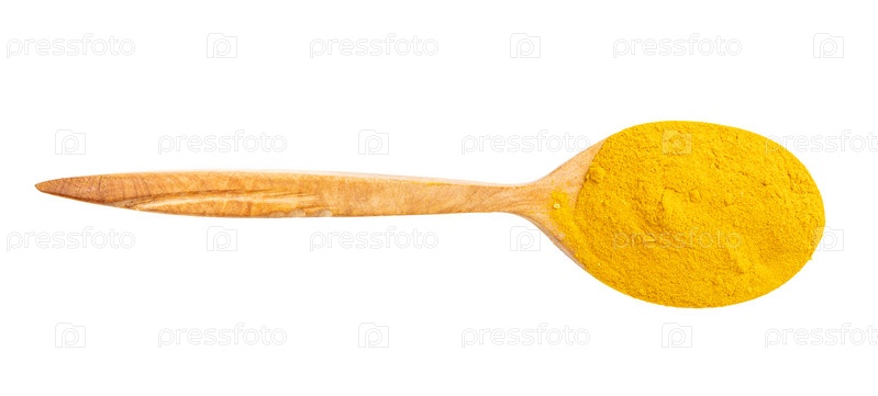 Вид сверху на ложку с порошком куркумы (куркумы)