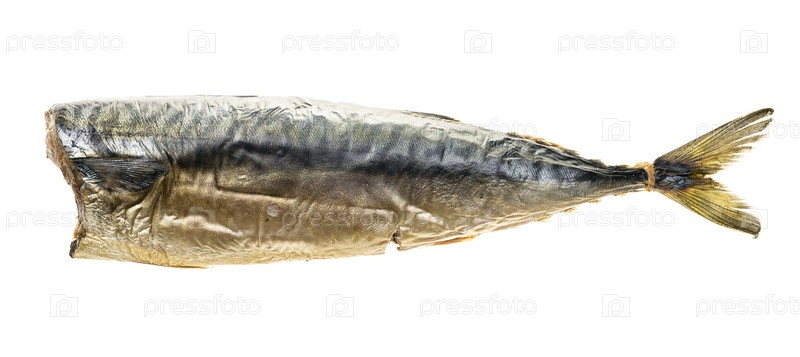 Скумбрия горячего копчения без головы, изолированная на белом