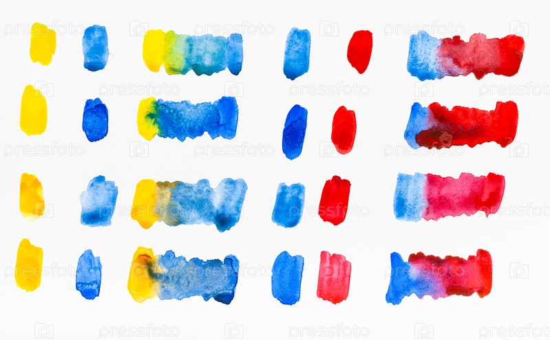 Смешивание желтого и красного с синими цветами