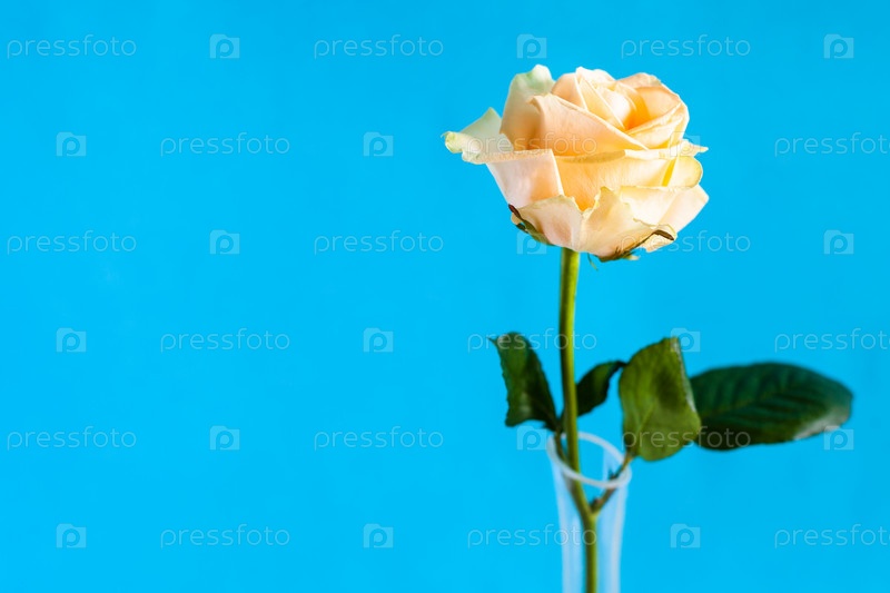 Свежий желтый цветок розы с синим фоном