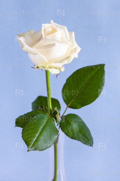 Натуральная белая роза на бледно-фиолетовом фоне