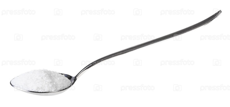 Вид сбоку на столовую ложку с зернистой каменной солью