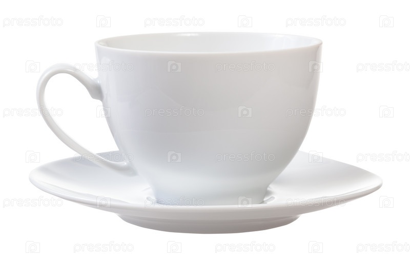 Вид сбоку на белую фарфоровую чашку и блюдце