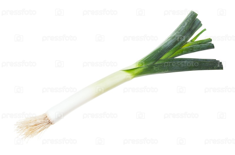 Спелый лук-порей с корнями, изолированными на белом