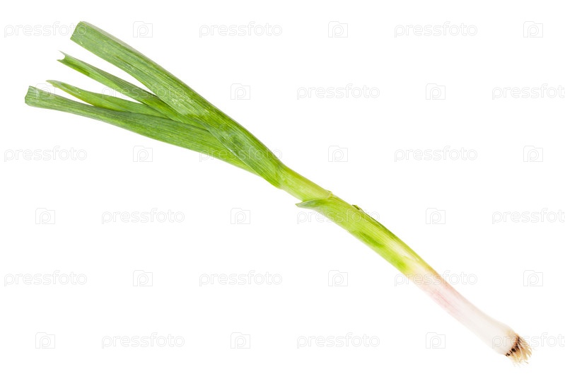 Зеленый молодой весенний чеснок, изолированный на белом
