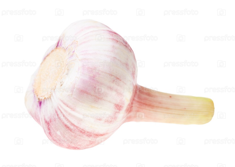 Одна луковица спелого молодого чеснока, изолированная на белом