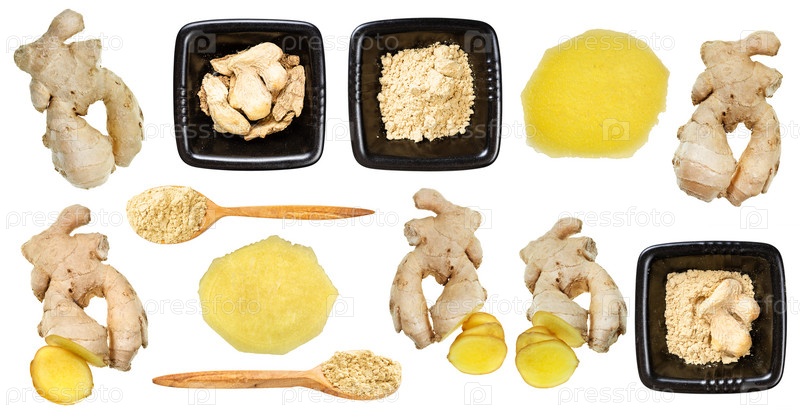 Набор различных свежих и сушеных корней имбиря