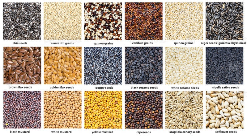 Фон - различные зерна с названиями крупным планом