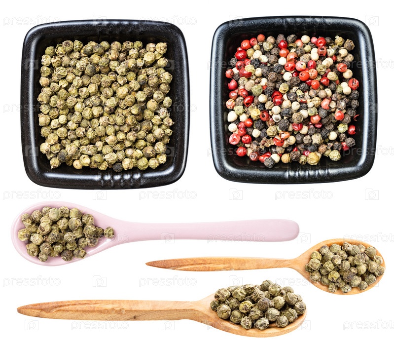 Набор различных зерен перца зеленого перца изолированы