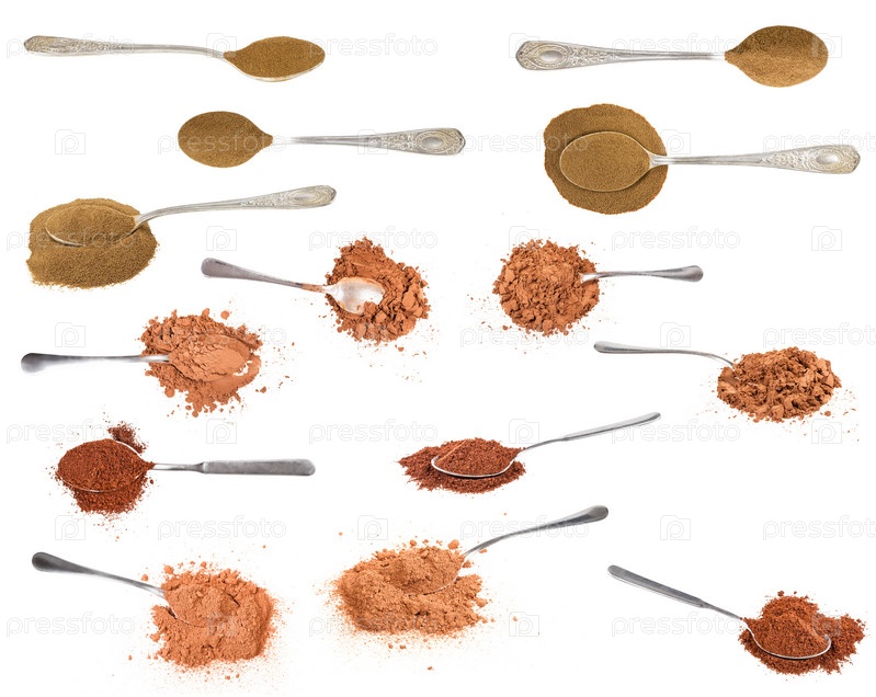 Набор различных молотых напитков, изолированных на белом
