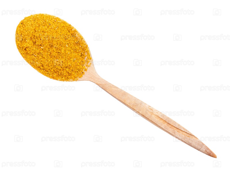 Вид сверху на измельченные сушеные бархатцы в деревянной ложке