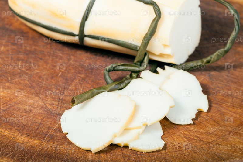 Нарезанный сыр Provola Affumicata, крупным планом