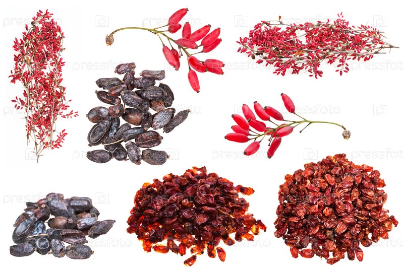 Набор различных изолированных плодов барбариса