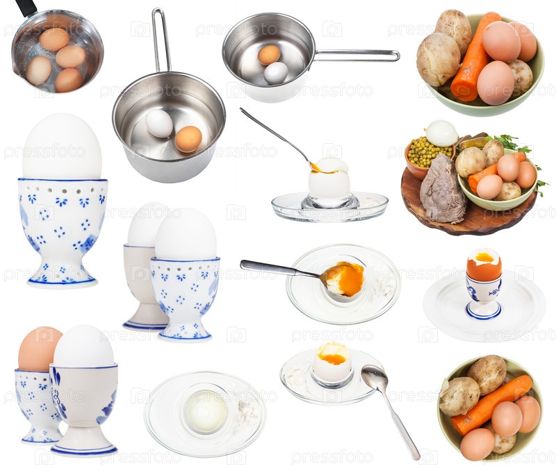 Набор различных вареных яиц, изолированных на белом