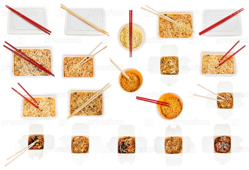 Сбор азиатских фаст-фудов в одноразовых коробках